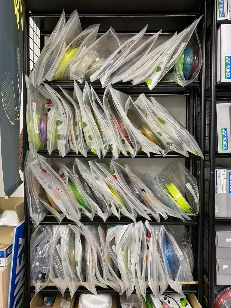 ロールガットを店にキープしていただくとガット張り料金が40%オフになります。